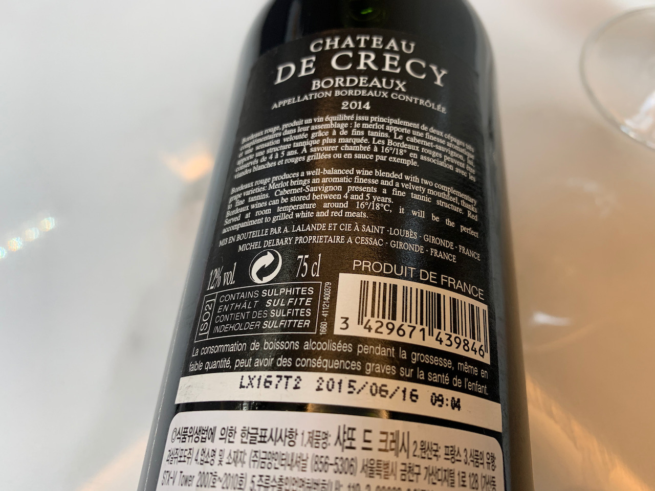 뒷라벨을 보면 메를로와 까베르네 쇼비뇽이 블렌딩 된 것으로 보인다. 알콜도수는 12도로 낮은 편이다.