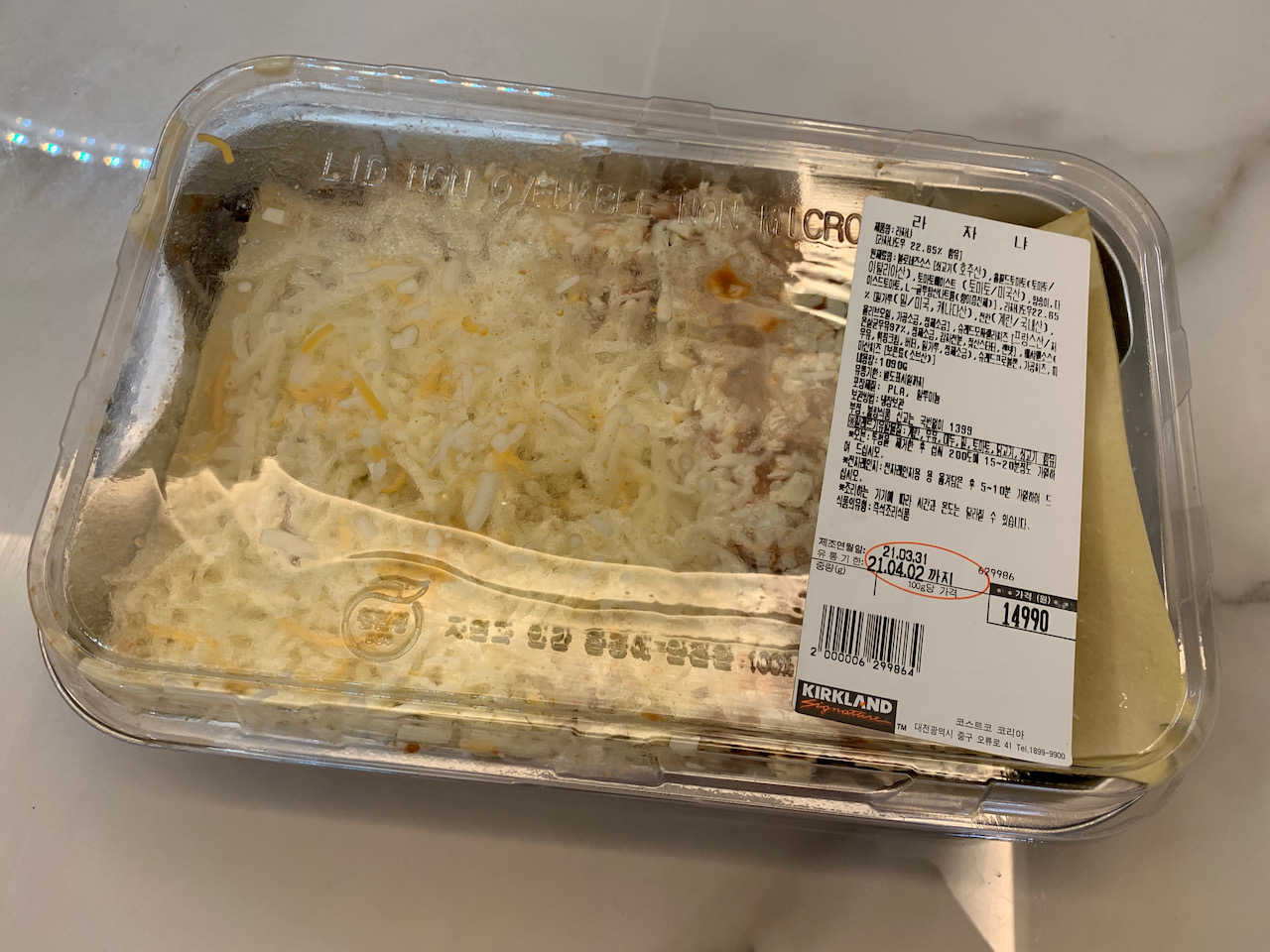 코스트코에 연어롤 사러 갔다가 없어서 라자냐를 샀다. 라자냐가 원래 있었는데 내가 관심이 없어 모르고 있던 건지, 최근에 새로 나온 건지는 모르겠지만, 큼직한 사이즈와 무게감이 마음에 들어 저녁으로 먹기 위해 구매를 했다.