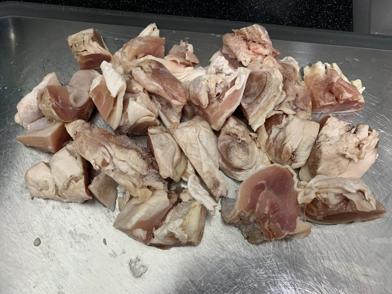 닭고기는 껍질이 있는 닭 정육을 400g이 조금 넘는 양을 준비했다.