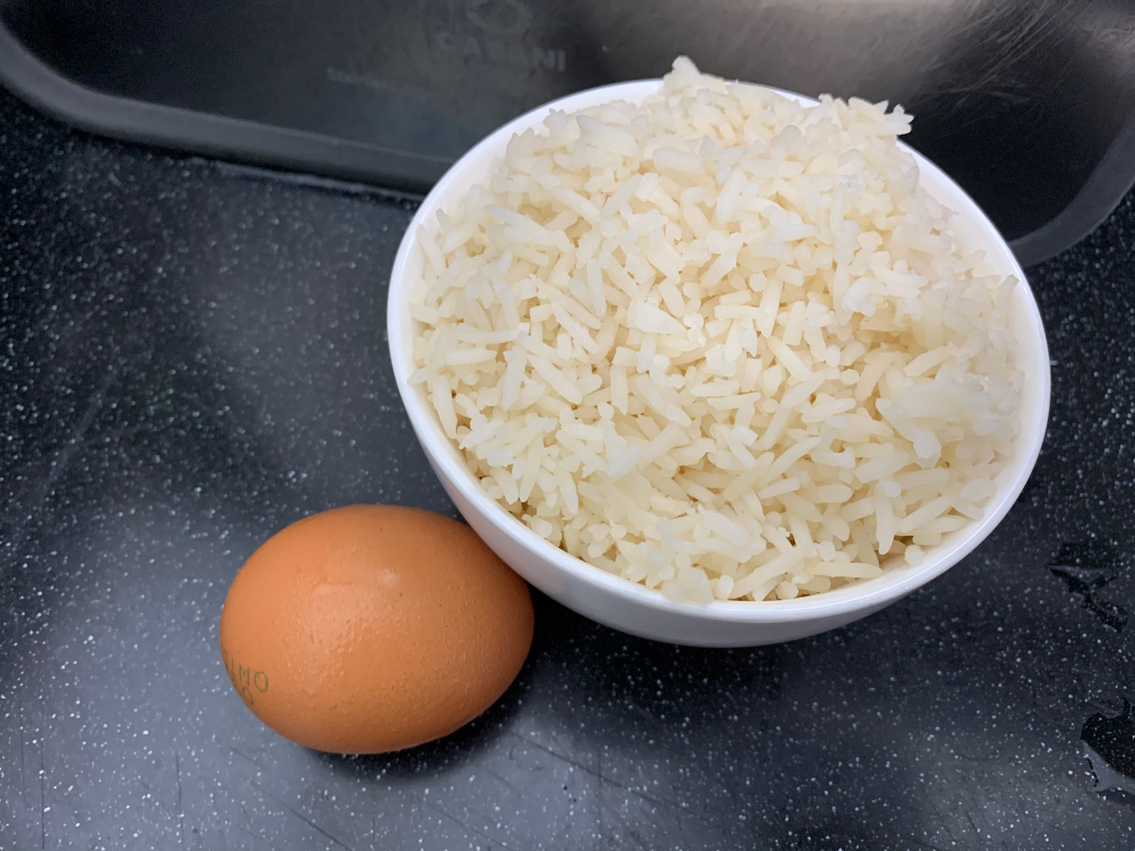 밥은 볼록하게 한 공기를 준비했고, 계란은 하나를 사용했다.