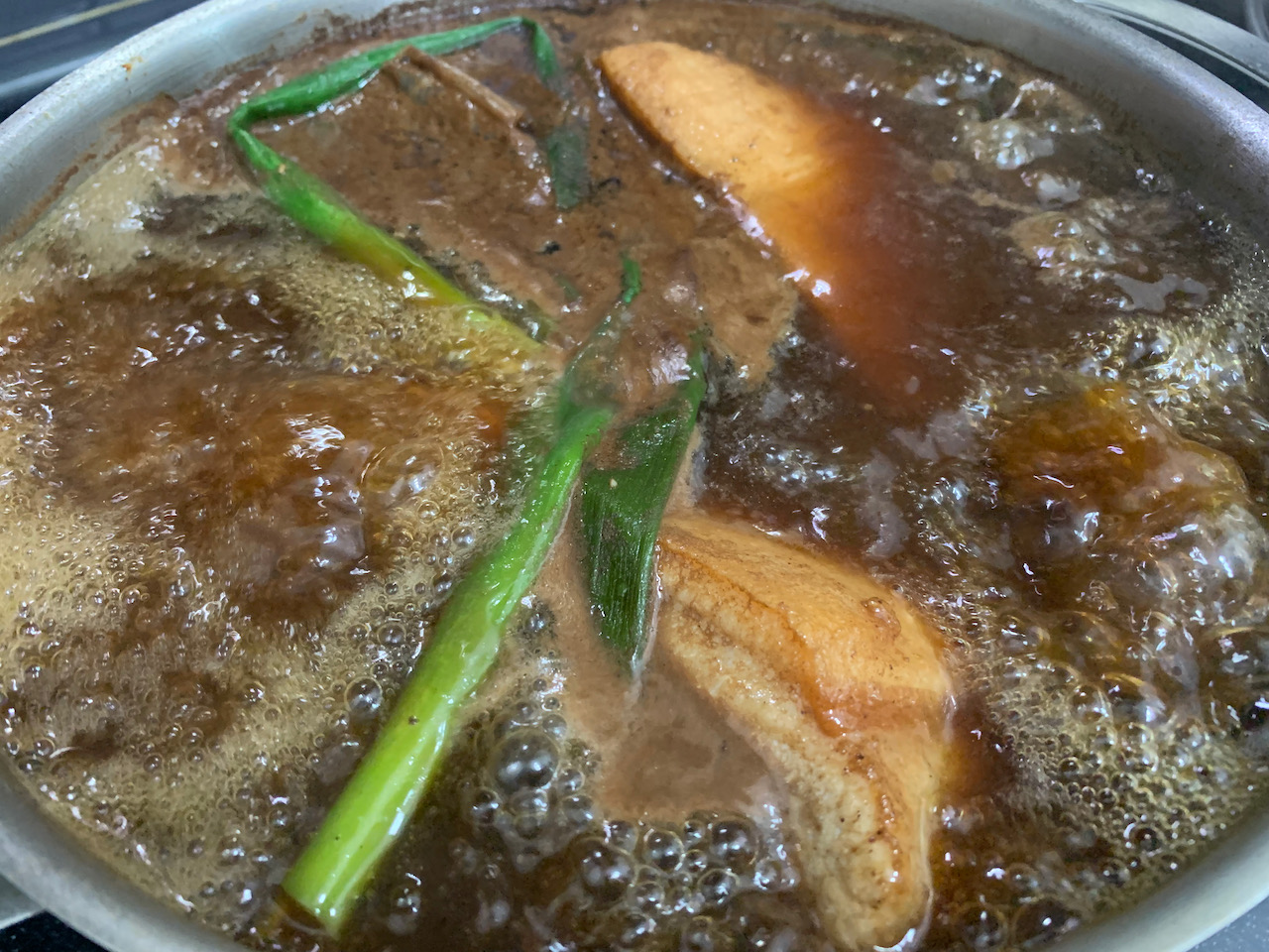 이 음식은 국물이 맛있어야 하기 때문에 완성하기 전에 맛을 본다. 적당히 달고 감칠맛 있으면 되는데, 입에 맛있으면 된 거다. 향신채들은 다 건져준다. 혹시 국물이 너무 짜거든 물을 더 넣어서 조금 더 끓여준다.