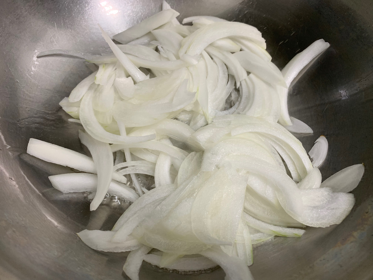 기름 적당히 두르고 양파를 먼저 볶는다.