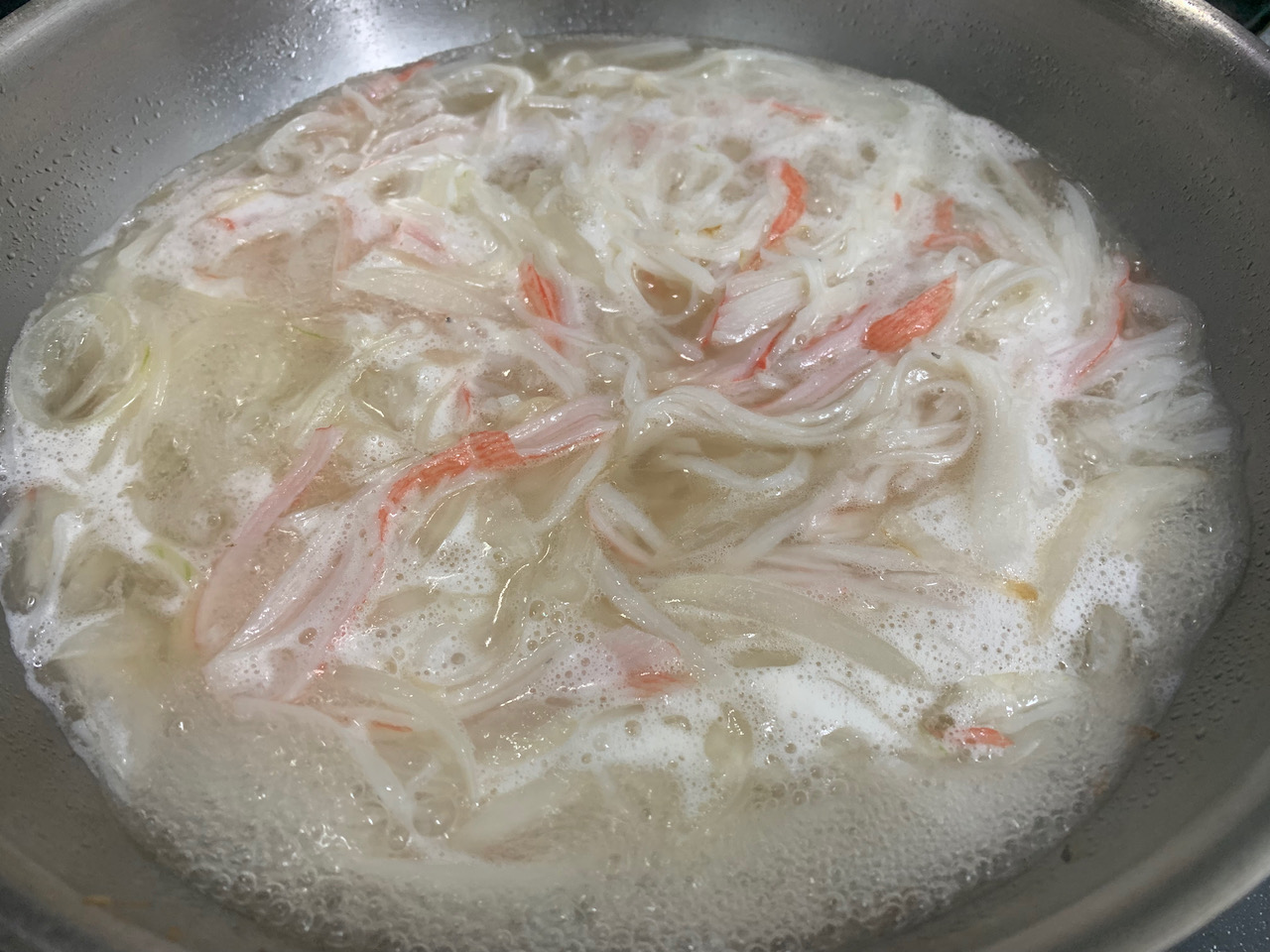 설명서대로 크래미도 넣어서 볶았는데, 조리 마지막에 넣어서 끓여도 될 것 같다.