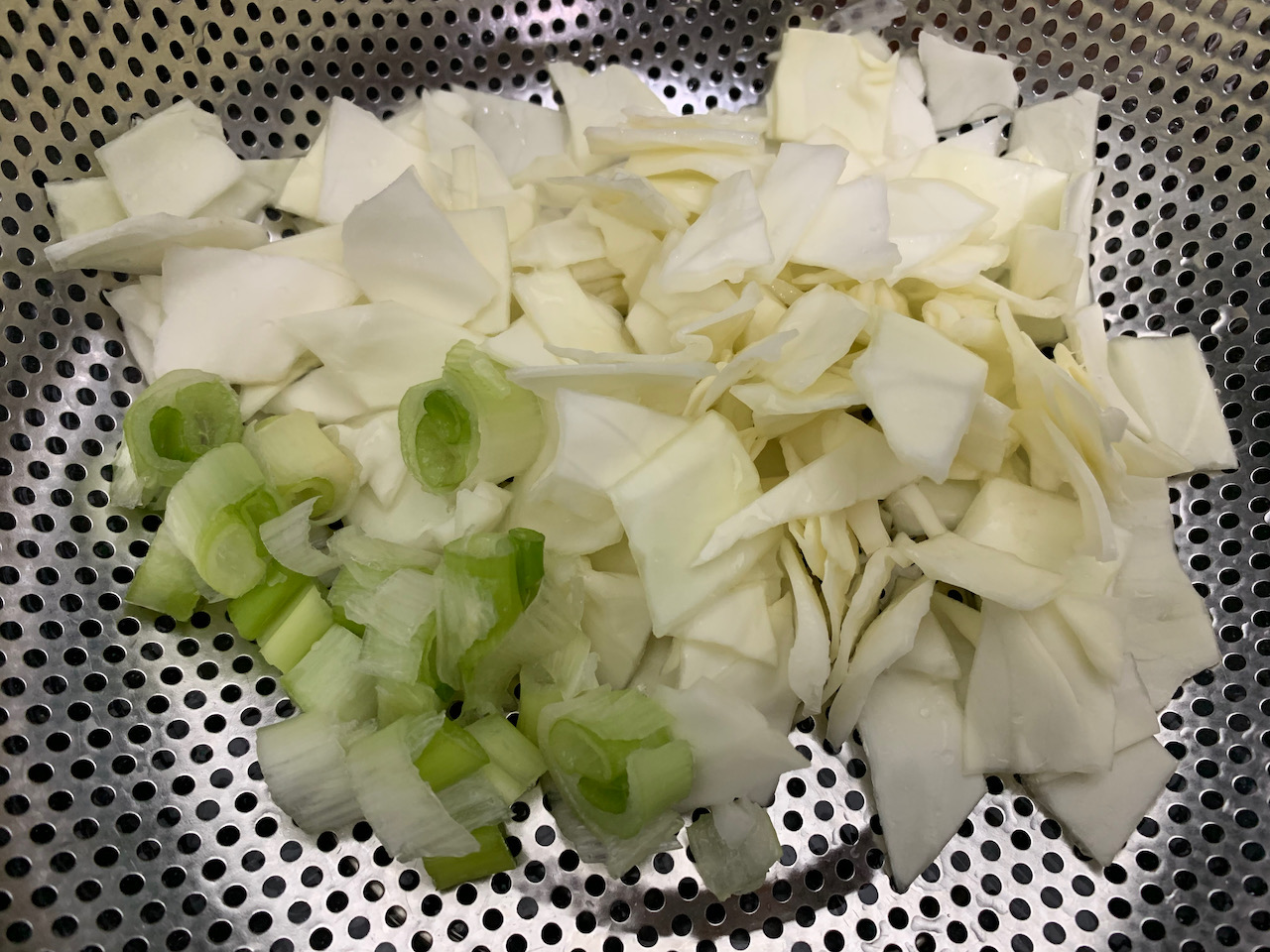 나머지 재료는 냉장고에 있는 야채들을 사용했다. 양배추와 대파를 썼는데, 양파나 당근 같은 일반적으로 볶음밥에 들어갈 수 있는 재료들을 사용하면 된다. 추가로 김가루가 있으면 좋다.