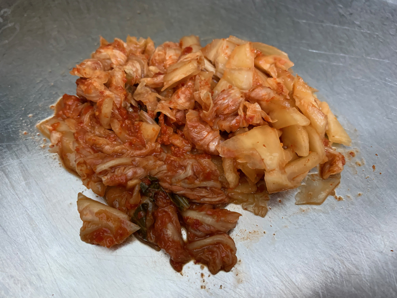 고기가 들어간 볶음밥에는 김치가 있어줘야 밖에서 사 먹는 듯한 느낌을 살릴 수 있다고 생각한다. 대충 다져서 한 줌 정도 준비했다.