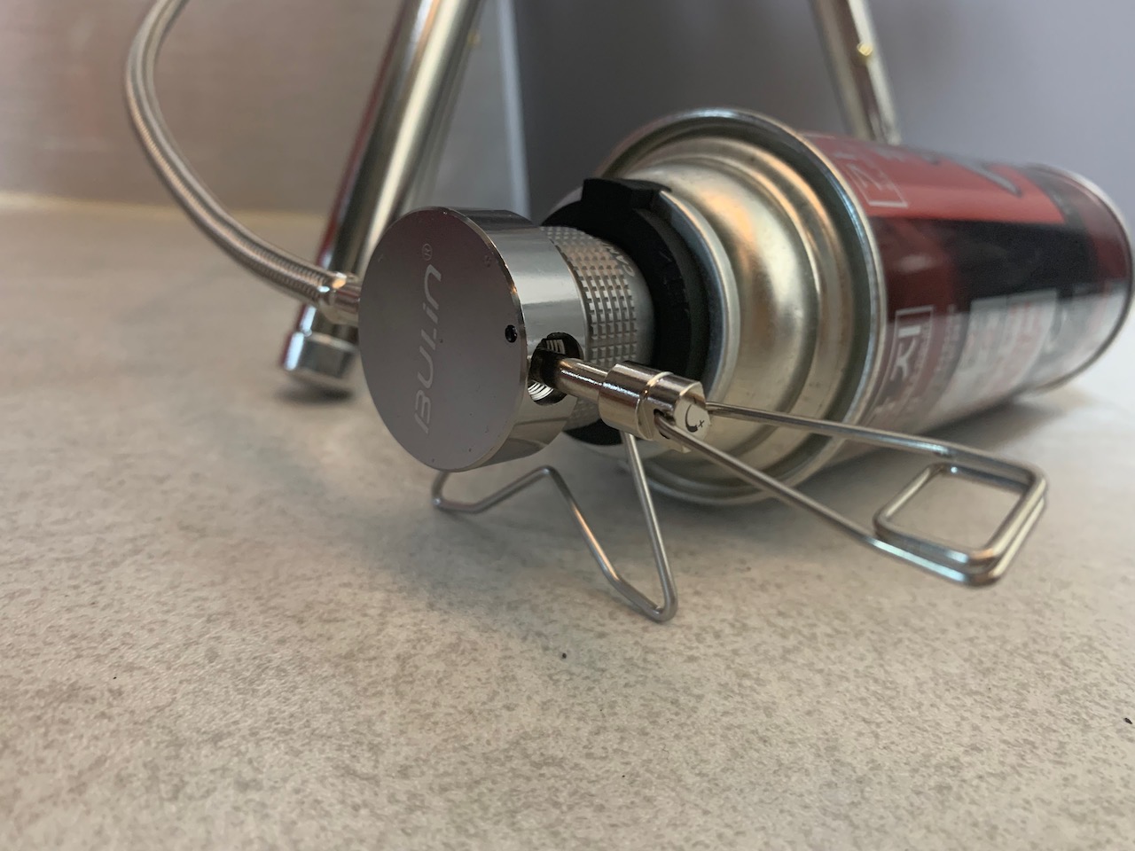 참고로 부탄가스를 체결해 사용할 때는 일반 버너에 부탄가스를 넣을 때처럼 홈이 위를 바라보게 하고 눕혀서 사용해야 한다. 함께 딸려온 z10 어댑터는 올바르게 놓을 수밖에 없도록 받침대와 홈이 자리 잡고 있다.