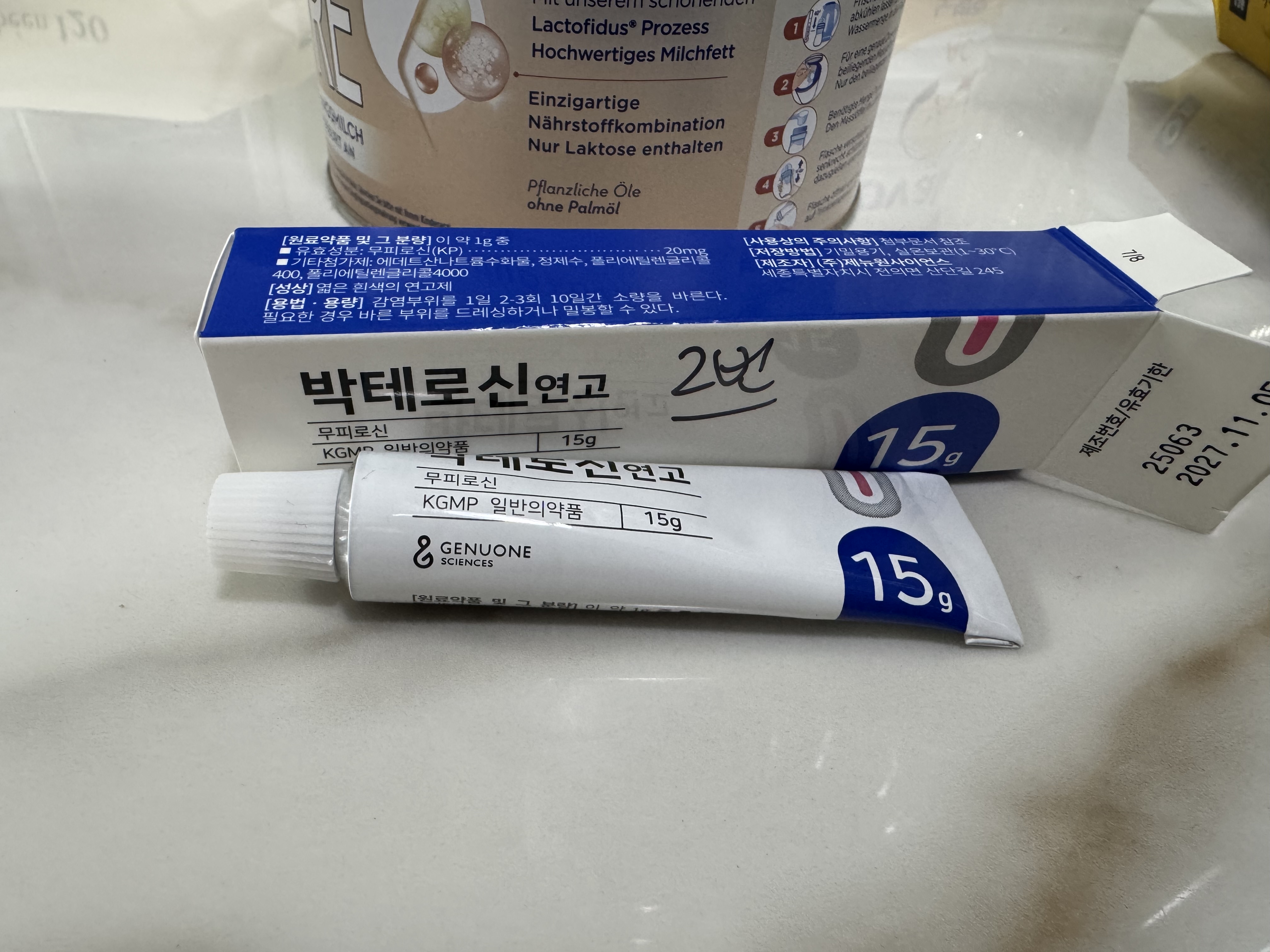 의사 선생님이 보시고는 배꼽이 두꺼운 아이는 늦게 떨어지는 경우가 있다며 현시점에서는 큰 문제가 아니라고 하셨다. 다만 모양이 깔끔하게 떨어질 것 같지는 않다고 하시고, 육아종의 위험이 있으니 연고 바르며 지켜보자고 하셨다. 일부러 떼어내려 하지 말고 실내 온도를 높지 않게 유지하라는 말도 들었다. 진료실에서 간단하게 드레싱을 하고 연고를 처방받았다.