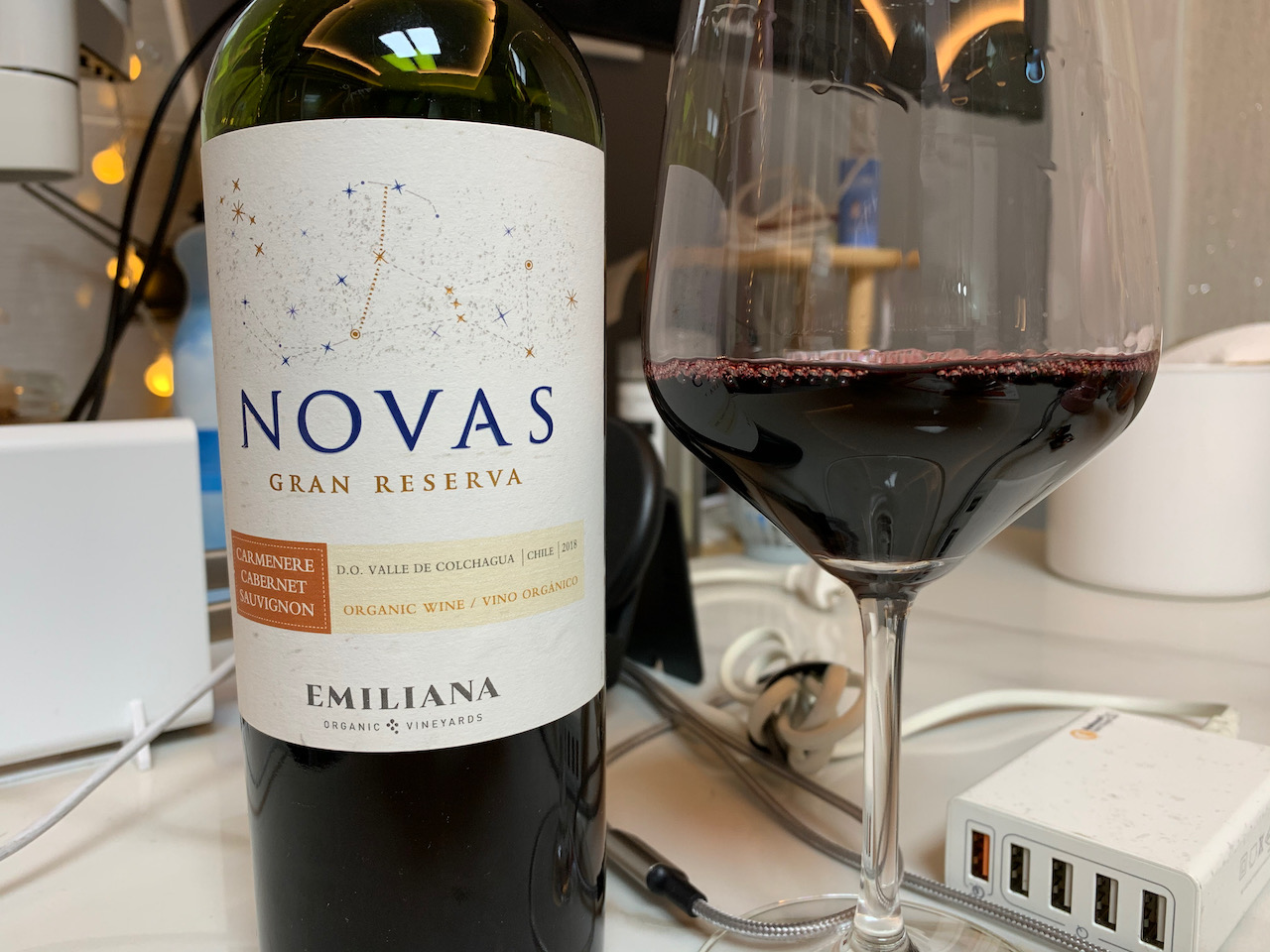 이마트 트레이더스에서 15,980원을 주고 산 노바스 까르미네르 까베르네 소비뇽 2018을 마셨다. 그냥 병이 이뻐 보여서 샀고, 비비노에서 228개 평가에 3.9점이라 '나쁘지는 않겠는데?'라는 생각으로 병을 집었었다.
