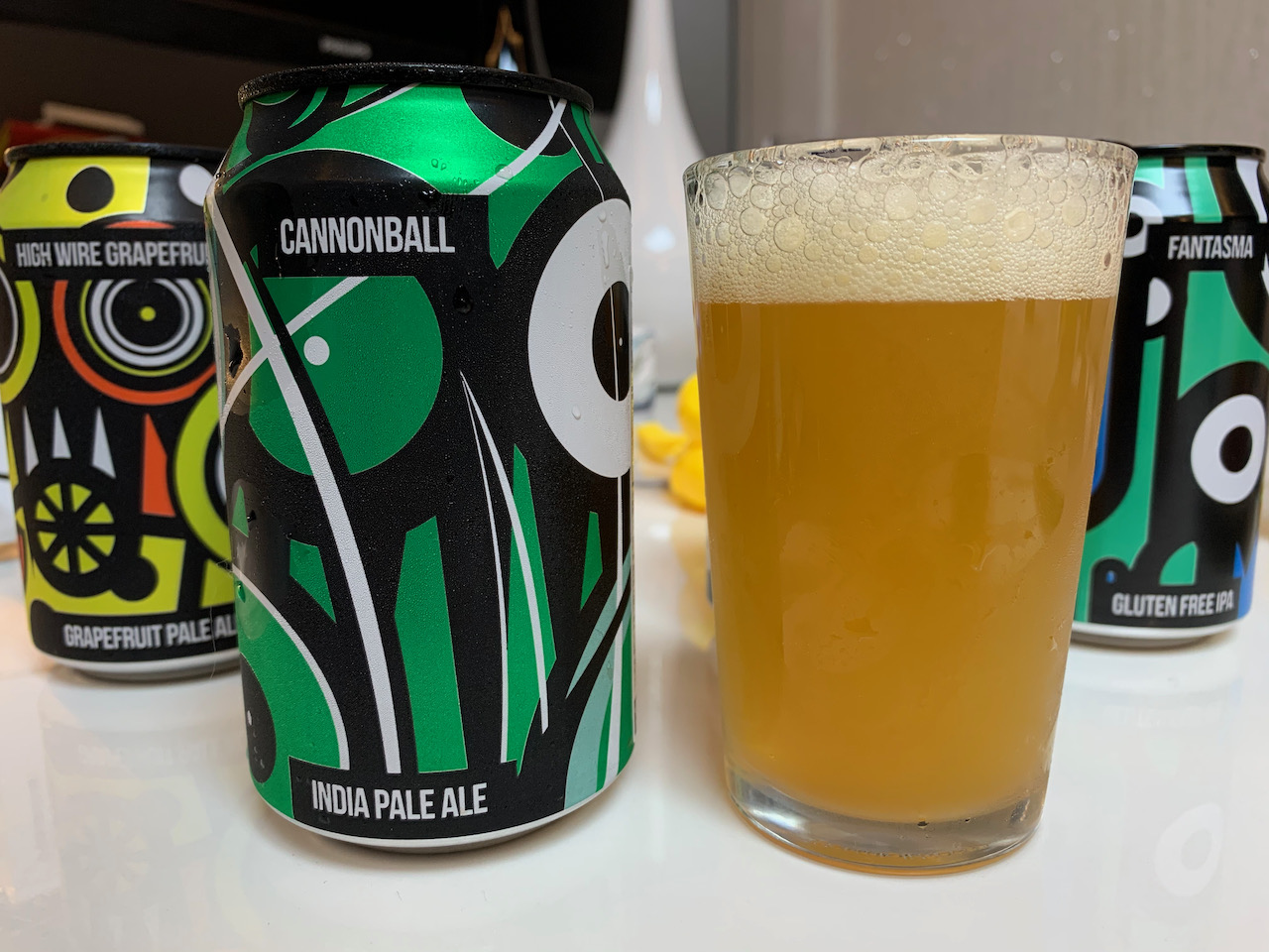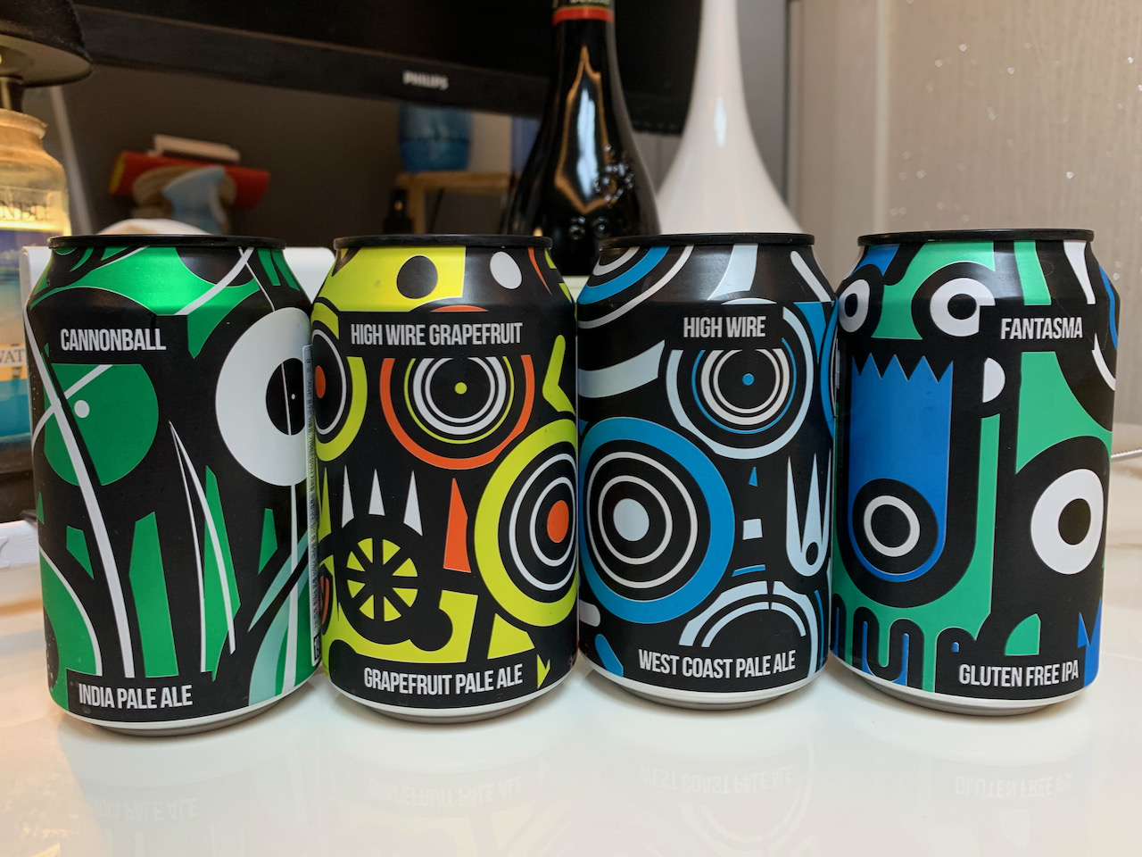 홈플러스 주류 코너에서 검은색 캔에 화려한 무늬로 치장한 맥주가 눈에 띄어 사 와봤다. 캐논볼(CANNONBALL), 판타스마(FANTASMA), 하이와이어(HIGH WIRE), 하이와이어 그레이프 프루트(HIGH WIRE GRAPEFRUIT) 4종류가 있었는데, 큰 고민 없이 다 사 왔다.