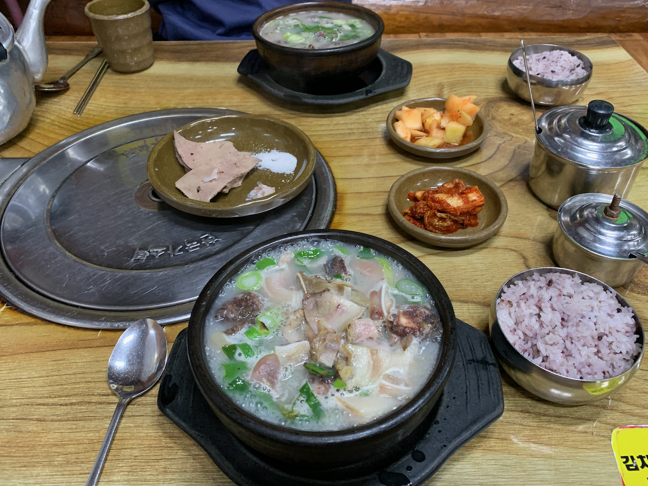 들어갈 때 온도 체크를 하고 연락처를 남기는 작업을 하고 자리를 잡았다. 메뉴는 여럿이 있지만 굳이 모험은 하고 싶지 않고, 배가 많이 많이 고픈 상태였으므로 리필이 되는 순대국밥을 주문했다.