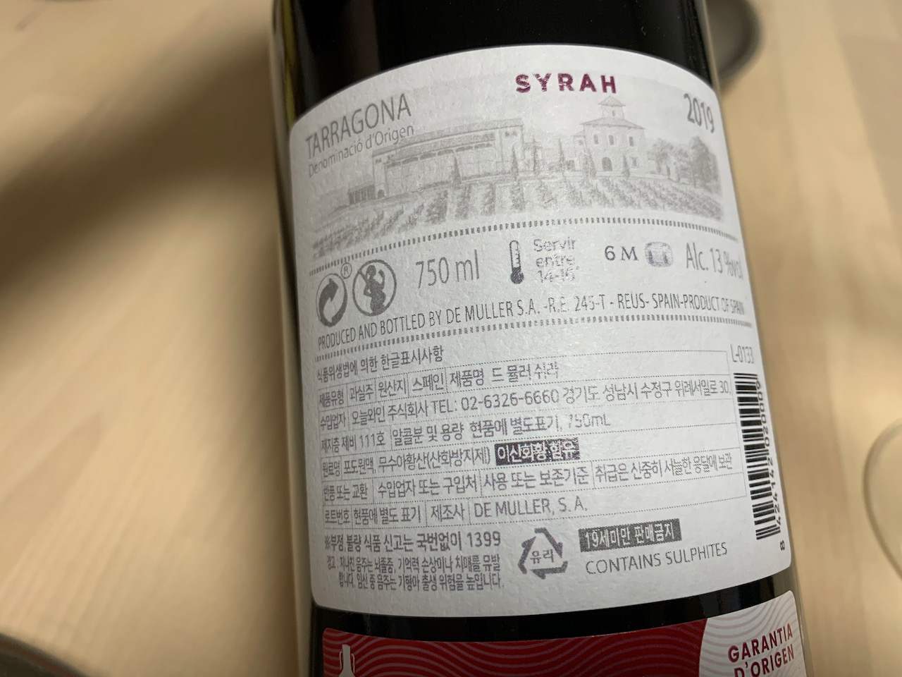 이마트에서 드 뮬러 와인 두 병을 사면 할인해주는 행사가 있었다. 마트에는 샤도네이와 쉬라 두 종류가 있었는데 샤도네이는 따로 마실 것이 있어서 쉬라를 마시게 됐다.